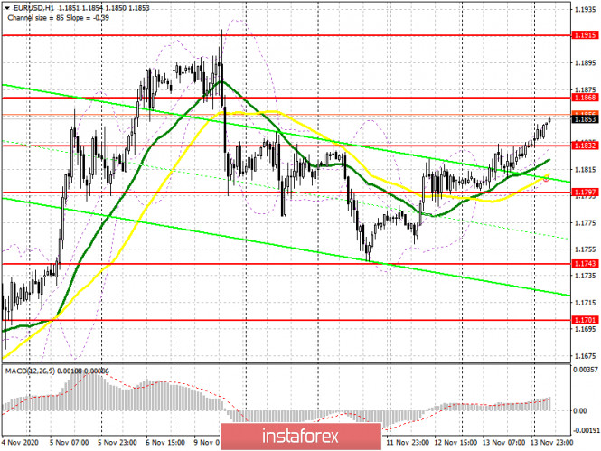 | Posted: 15 Nov 2020 10:58 PM PST Для открытия длинных позиций по EURUSD требуется: И хоть в пятницу мы так и не смели дождаться образования хоть какого-либо сигнала по входу в рынок, покупатели европейской валюты воспользовались моментом и продолжили укреплять свои позиции против доллара США после слабой фундаментальной статистики. Отчет по резкому сокращению потребительских настроений в США удивил своими цифрами. Связано это прежде всего с отсутствием компромисса между республиканцами и демократами по новому пакету мер помощи экономике и американцам, а также из-за новой волны пандемии коронавируса которая вновь заставляет прибегать к мерам социального дистанцирования и изоляции. На 5-ти минутном графике четко видно, что точек входа в рынок образовано не было, так как ни до одного из уровней мы не дотянули.