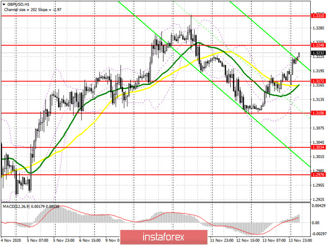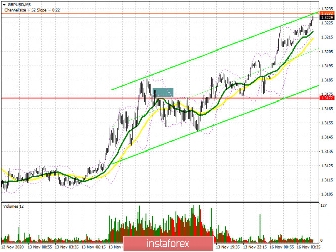 | Posted: 15 Nov 2020 11:13 PM PST Для открытия длинных позиций по GBP/USD требуется: В прошлую пятницу во второй половине дня был образован достаточно хороший сигнал на продажу британского фунта. И вроде как мы пошли вниз, движение три раза набирало по 20 пунктов, но затем останавливалось. Плохие данные по сокращению потребительских настроений в США удивил своими цифрами и разочаровал покупателей американского доллара. Связано это прежде всего с отсутствием компромисса между республиканцами и демократами по новому пакету мер помощи экономике и американцам, а также из-за новой волны пандемии коронавируса которая вновь заставляет прибегать к мерам социального дистанцирования и изоляции. Давайте разберем сделку. Если вы посмотрите на 5-ти минутный график, то увидите, как медведи формируют ложный пробой в районе сопротивления 1.3172 и возвращают пару под этот диапазон, выше которого забраться быкам уже не удается. Тест этого уровня снизу вверх с обратной стороны привел к формирование сигнала на продажу фунта, на что я обращал внимание в своем пятничном обзоре.
